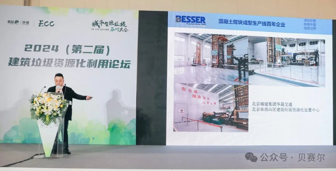 在3月2日下午的第二届建筑垃圾资源化利用论坛上,贝赛尔科技(常州)有限公司总经理刘欣先生发表《双碳战略牵引下,建筑垃圾处理"端到端"解决方案》的主题演讲,通过介绍贝赛尔装备技术特点、产品优势、以及通过建筑垃圾客户实例,向与会者分享贝赛尔混凝土制品成套装备在建筑垃圾资源化利用领域的成果,引起广泛关注。